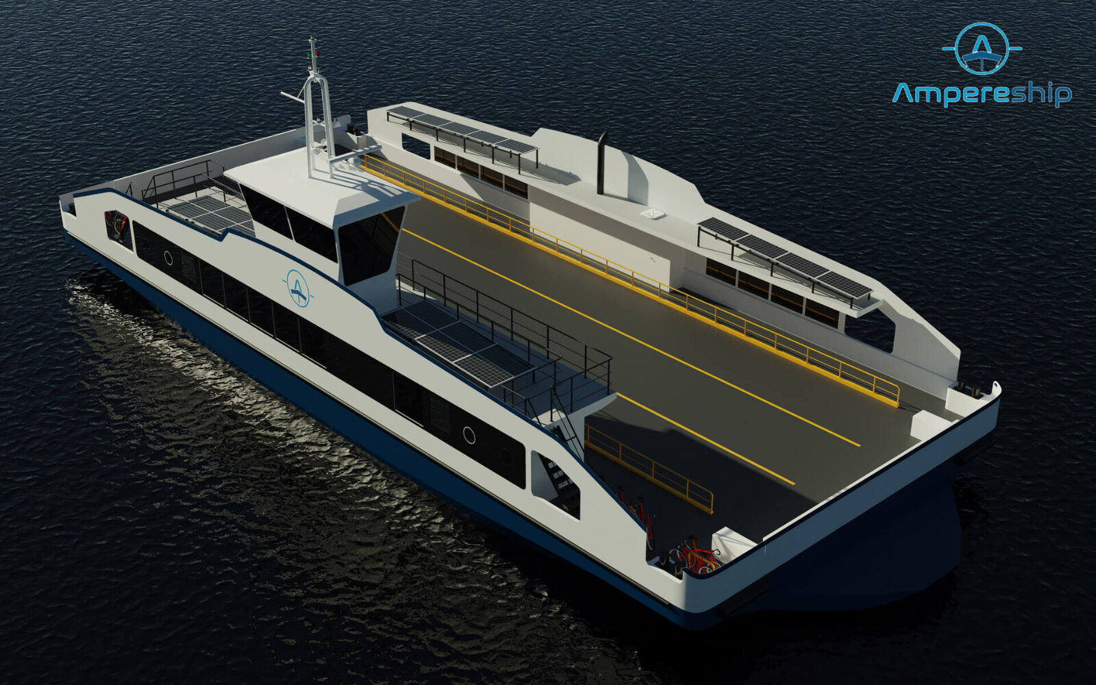 Die 37 Meter lange Fähre ist für den Transport von bis zu 300 Personen, 15 Fahrrädern sowie 18 Pkw (alternativ 12 Pkw und zwei Lkw) ausgelegt. Der vollelektrisch angetriebene Neubau wird in Zusammenarbeit mit der Schwestergesellschaft Ampereship GmbH realisiert und komplett aus Stahl gefertigt.