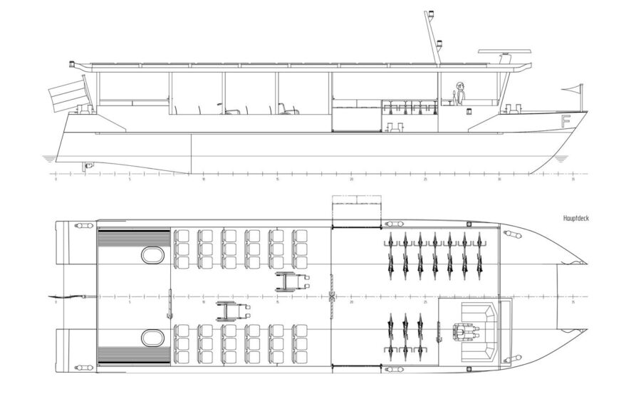 Die ASP-60 wurde entwickelt, um elektrische Antriebsenergie besonders effizient zu nutzen. Dafür setzt Ampereship auf eine hydrodynamisch optimierte Rumpfform und gewichtsreduzierte Bauweise – angepasst an die jeweiligen betrieblichen Anforderungen. Das Ergebnis ist ein emissionsfreier Schiffsbetrieb mit maximaler Energieausnutzung.