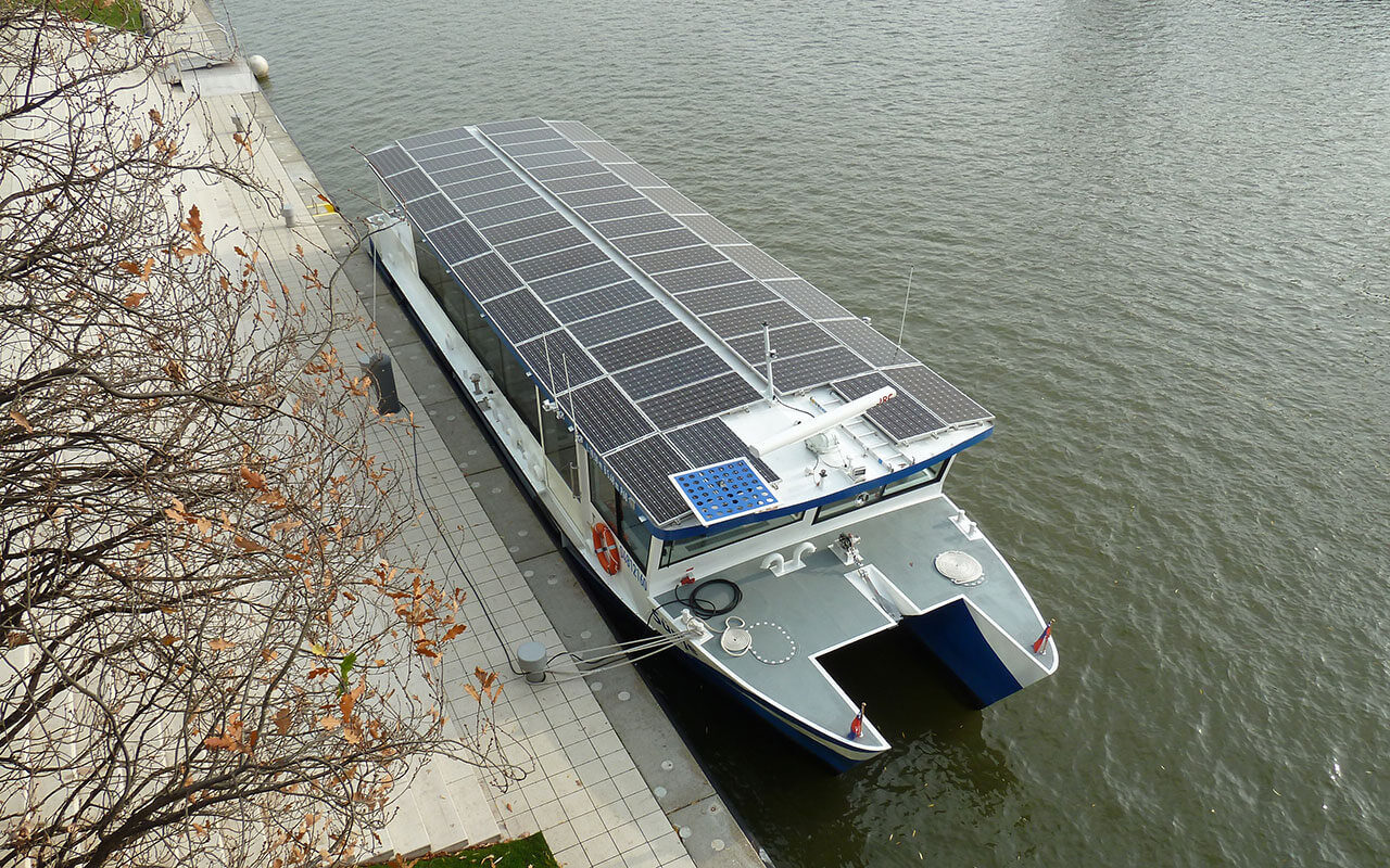 Die Energieversorgung erfolgt tagsüber über integrierte Solartechnik. Zusätzlich kann der Energiespeicher über Nacht über einen Landstromanschluss aus erneuerbaren Quellen geladen werden. Der Betrieb erfolgt damit vollständig CO₂-neutral und nahezu geräuschlos. Ampereship bringt die Elektromobilität der Zukunft aufs Wasser.