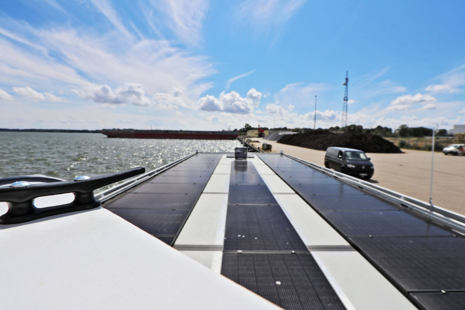 Die Energieversorgung erfolgt durch leistungsfähige Batteriesysteme, die bei gutem Wetter durch eine integrierte Solaranlage ergänzt werden. Zusätzlich kann über Nacht emissionsfreier Landstrom aus regenerativen Quellen eingespeist werden. Das Ergebnis: ein lokal CO₂-neutraler, nahezu geräuschloser Fährbetrieb für moderne Mobilitätslösungen. Ohne Fußabdruck über das Wasser- Ampereship bringt die Elektromobilität der Zukunft zu Ihnen.