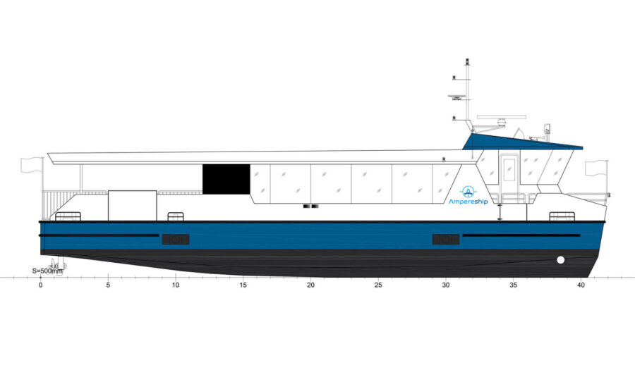 Die ASP-80 ist das derzeit fortschrittlichste Schiff in der Ampereship-Flotte. Sie wurde auf Basis aktueller wissenschaftlicher Erkenntnisse entwickelt und vereint einen hydrodynamisch optimierten Rumpf mit intelligenter Gewichtsverteilung und hocheffizienten elektrischen Systemen. So ist ein rein elektrischer Betrieb über den gesamten Arbeitstag hinweg sichergestellt – unabhängig von Wetterbedingungen.
